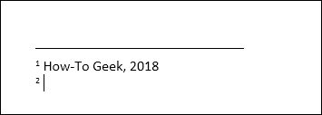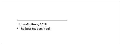 پاورقی در پایین صفحه در زیر یک خط افقی کوتاه ظاهر می شود. هر بار که پاورقی در این صفحه اضافه می کنید، شماره دیگری به لیست اضافه می شود