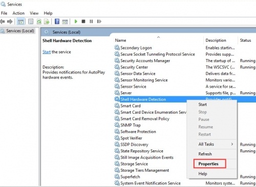 Shell Hardware Detection را پیدا کنید.. روی آن راست کلیک کرده و