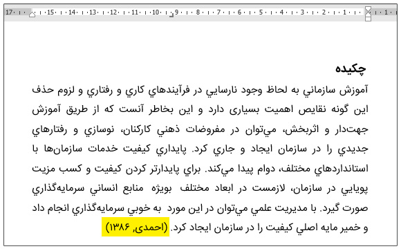 نکته: به طور پیشفرض در نرمافزار ورد از سبک رفرنسنویسی