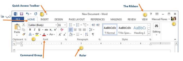 Word نیاز دارید. این قسمت چندین زبانه است که هر یک با چندین گروه از دستورات کار می کند