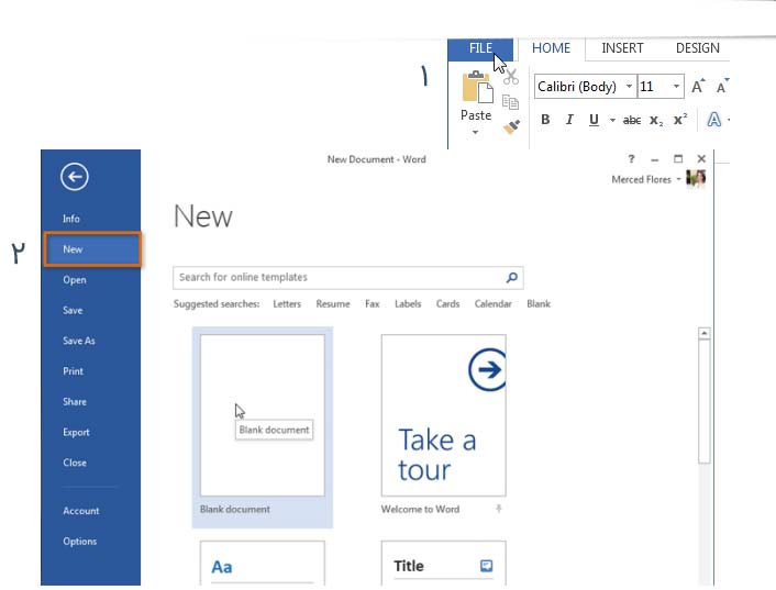 Blank Document یا سند خالی: هنگامی که یک سند خالی جدید باز می شود، نقطه درج در قسمت بالا در گوشه سمت چپ صفحه قرار دارد و در صورت تمایل می توانید تایپ کردن از این قسمت را شروع کنید