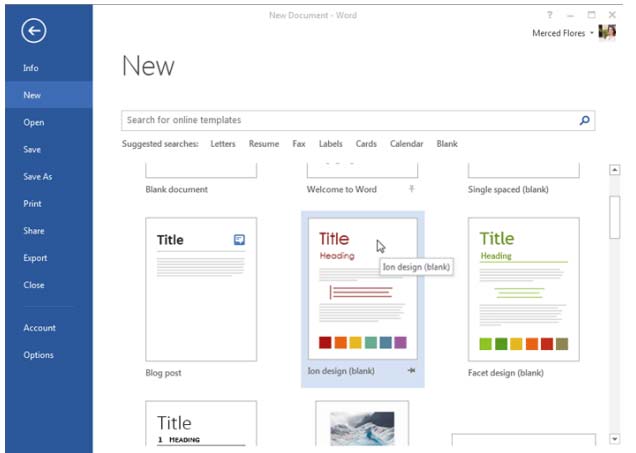 گزینه new را انتخاب کنید. چندین قالب در زیر گزینه سند خالی ظاهر می شود.