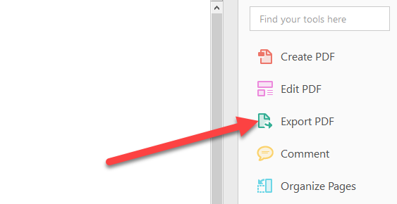 مرحله ۱: ابتدا باید فایل PDF خود را در Acrobat باز کنید. سپس ، در سمت راست پنجره بر روی دستور Export PDF کلیک کنید.