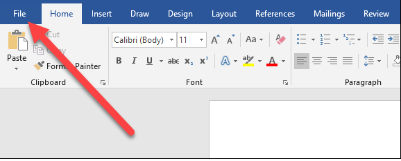 ۱- در نوار ابزار ورد بر روی تب File کلیک کنید.