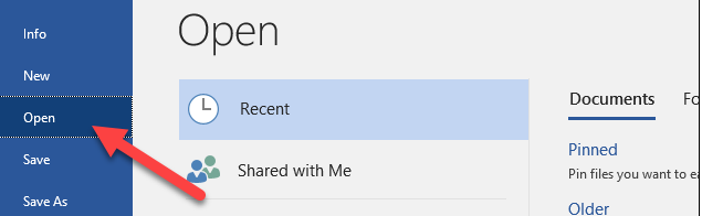 ۲- در نوار کناری که مشاهده می کنید بر روی گزینه Open کلیک کند.