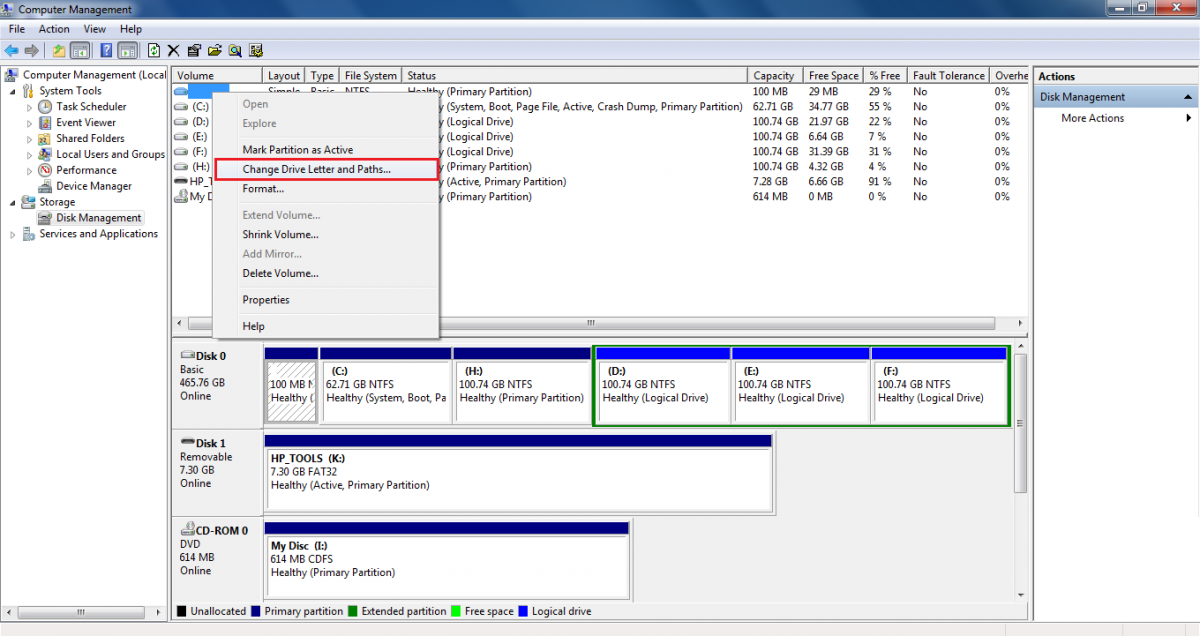 Change Drive Letter And Paths کلیک چپ می کنیم