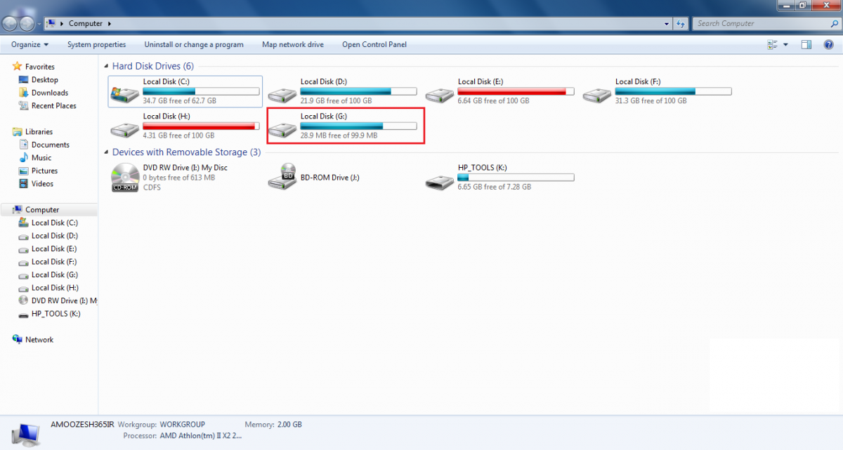 Computer دابل کلیک کنیم مشاهده می شود درایو مورد نظر ظاهر گردیده است