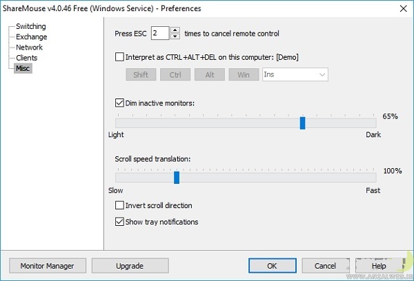 . ShareMouse دارای برخی از ویژگی های جالب است. موردی که از میان ویژگی های آن بسیار بارز است، توانایی کمرنگ کردن مانیتوری است که از آن استفاده نمی کنید. البته نسخه رایگان