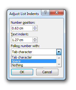 OK کلیک کنید. به این طریق زمان شماره گذاری فاصله اضافی ایجاد نمیشود