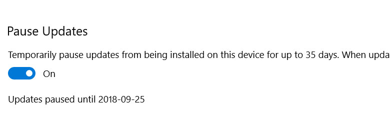 2018 روشهایی برای اینکار معرفی شده بود که هر کدام از آنها اشکالات خود را داشت چون در ویندوز ابزار کاملا مشخصی برای اینکار وجود نداشت و می بایست با روشهای تقریبا غیر اصولی و غیر تعاملی مانع آپدیت شدن ویندوز می شدیم. اما در نهایت در ورژن 1803 که در اواخر اردیبهشت 1397 ارائه شد این امکان مهیا شده است
