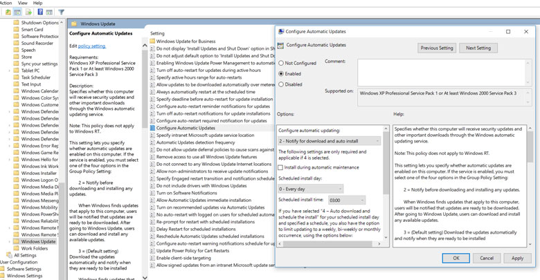 بر روی گزینه Configure Automatic Updates دبل کلیک کنید.