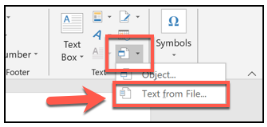 اکنون در بخش Text بر روی منوی کشویی گزینه Object کلیک کنید. سپس در منو ظاهر شده گزینه Text from File را انتخاب کنید.
