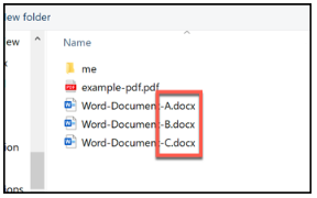 توجه داشته باشید که هیچ محدودیتی برای انجام این کار وجود ندارد و شما می توانید هر تعداد فایل ورد را با همدیگر ترکیب و ادغام نمایید. برای اینکه شما سندهای خود را به ترتیب وارد نمایید کافی است که به انتهای نام فایل های خود حروف A، B، C و غیره را اضافه کنید.