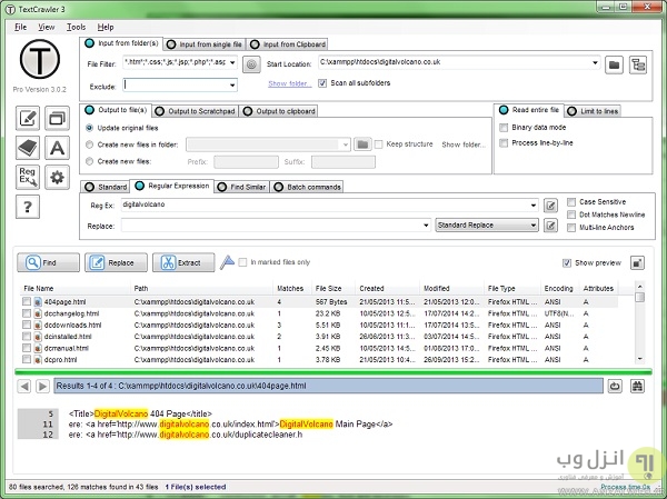 Replace کنید. و آخرین ویژگی قابل اشاره این برنامه آن است که قبل از شروع به باز کردن یک پرونده خاص، به راحتی می توانید پیش نمایش متنی را که در آن پرونده پیدا شده است، مشاهده کنید