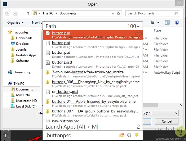 Ctrl را فشار دهید، می توانید نوار جستجو را نمایش دهید یا پنهان کنید. همچنین می توانید یک گزینه فیلتر جهت آسان تر کردن فرایند جستجو انتخاب کنید تا فقط پوشه ها یا میانبرها، اسناد، فیلم ها، تصاویر و یا موسیقی را در صفحه نتیجه نشان دهد