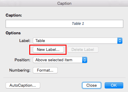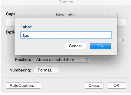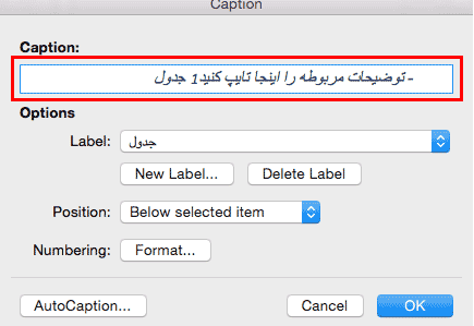 New Label کلیک کرده و عبارت “جدول” را وارد و تایپ کنید. نرم افزار ورد به صورت خودکار شمارش و یا تعداد را وارد می کند. در نهایت بر روی گزینه