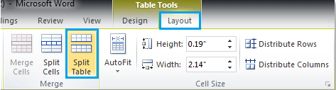 Split Table را انتخاب کنید. به این ترتیب یک فضای خالی در بالای جدول ایجاد خواهد شد و شما می توانید متن و توضیحات خود را وارد کنید