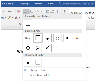 در دفعات بعد که به check box نیاز خواهید داشت، لازم نیست کل این مراحل را دوباره تکرار کنید. بلکه کافی است که بر روی منو کشویی Bullet List کلیک کنید، آنگاه در بخش Recently Used Bullets چک باکس مورد نظر خود را مشاهده خواهید کرد.