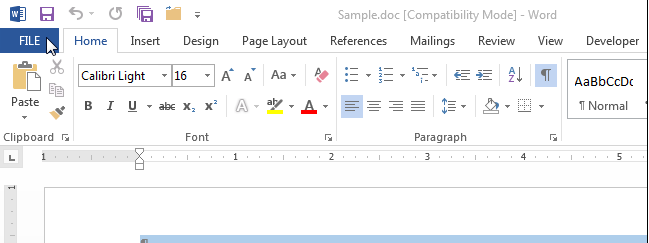 برای تبدیل سند قدیمی به نسخه های جدید اولین کاری که باید انجام دهید این است که ابتدا سند قدیمی را باز کرده و بر روی تب File کلیک کنید تا منو آن را برای شما باز شود.