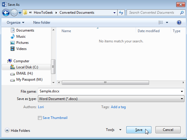 شما می توانید سند را با همان نام فایل در فهرست راهنما مشابه با نام فایل اصلی و با پسوند جدید docx. ذخیره کنید یا می توانید با نام جدید را برای آن انتخاب کرده و وارد نمایید. در هنگام ذخیره کرده فایل حتما دقت داشته باشید که سند ورد حتما در منوی کشویی Save as type فرمت docx. را انتخاب کرده و در نهایت بر روی گزینه Save کلیک کنید.