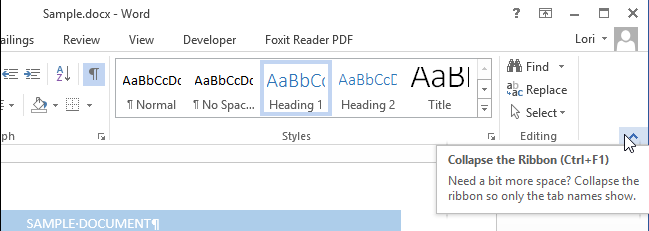 Ribbon قرار دارد که می توانید آن را مشاهده کنید. با کلیک کردن بر روی آن پیکان نوار ابزار ورد به حداقل می رسد