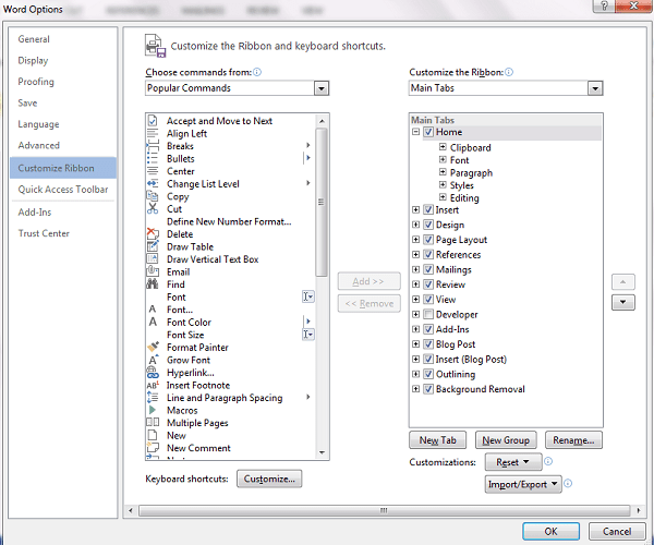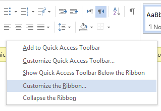 Ribbon را سفارشی کنید. یعنی تب هایی در نوار ابزار نمایش داده شوند که بیشتر با آن ها کار دارید و در اسناد خود از آن ها استفاده می کنید یا جای آن ها را عوض کنید و حتی نام گذاری آن ها را تغییر دهید. برای انجام این کار کافی است که مراحل زیر را به ترتیب دنبال کنید