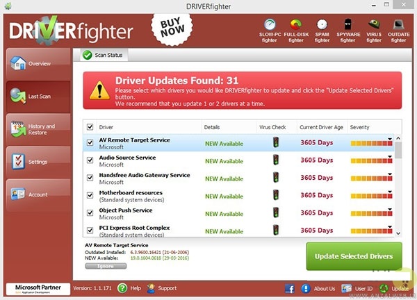 Driver Fighter ، بخش های سخت افزاری سیستم خود را اسکن کنید و درایور های ویندوز خود را ، به روزرسانی کنید