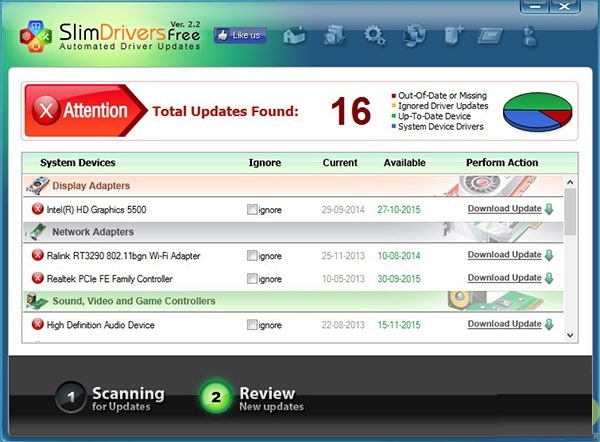 SlimDrivers با داشتن امکاناتی جهت اسکن دقیق و به روز ، تاریخ آخرین به روزرسانی درایور ها را بررسی کرده و آن ها را آپدیت می کند