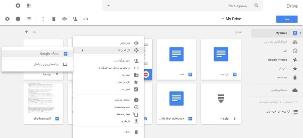 open with>Google Docs (در گوگل درایو فارسی باز کردن با