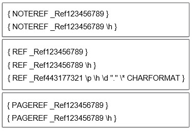 بیایید کمی به ارجاع متقابل دقیقتر نگاه کنیم. وقتی یک ارجاع متقابل درج میکنید، کد رشته داخل فیلد به آنچه به آن اشاره دارد، بستگی دارد. سه نوع