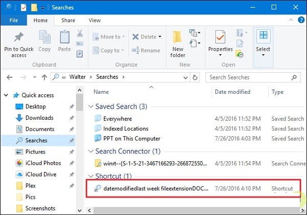 در واقع وقتی شما لیست جستجوتان را ذخیره میکنید ویندوز یک شورت کد نیز جهت دستیابی به نتایج ذخیره شده برای شما ایجاد میکند و با این میانبر نیز شما میتوانید مانند لیست بالا با دابل کلیک کردن بر روی آن لیست ذخیره شده تان را مشاهده نمایید