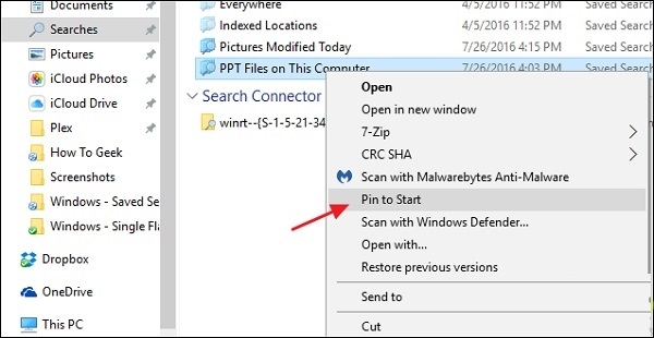 و در نهایت در ویندوز ۸ و ۱۰ شما قادر خواهید بود این فهرست جستجوی ذخیره شده را به منوی استارت ویندوز پین کنید. البته اینکار در ویندوز ۷ و ویستا با درگ کردن و کشیدن در منوی استارت نیز امکان پذیر خواهد بود