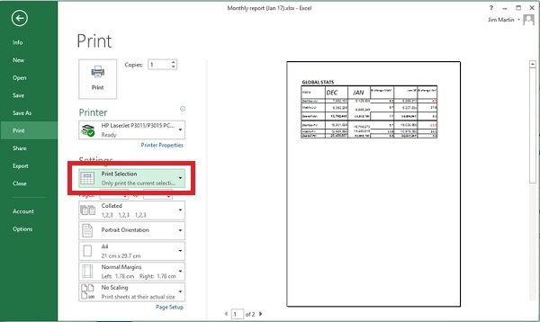 Print را کلیک کنید سلول های مورد نیاز خود را انتخاب کنید. بعد شما می توانید
