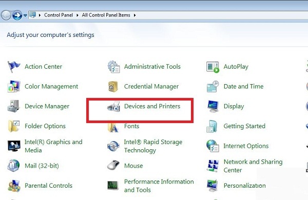 Devices and Printers را انتخاب کنید و روی آیکن پرینتر راست کلیک و