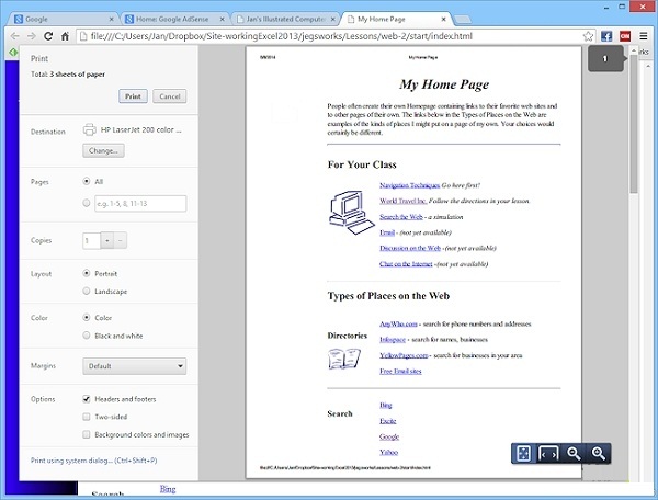 Print Preview را انتخاب کنید چونکه ممکن است شما به همه صفحه نیاز نداشته باشید. به طور مثال اگر تعداد کامنت ها و تبلیغات زیاد باشد هزیه چاپ خود را بالا خواهید برد. در صورت امکان شما می توانید ۲ صفحه وب را در ۱ برگ چاپ کنید تا کاغذ کمتری مصرف کنید. شما می توانید هنگام پرینت گرفتن گزینه