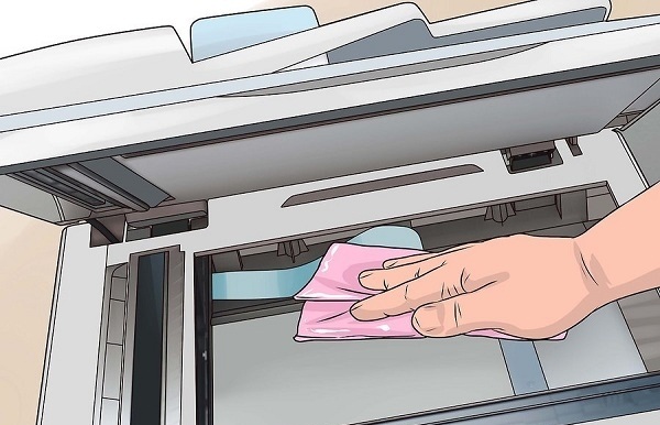 - ابتدا صفحه اسکنر دستگاه کپی را پاک کنید. وجود لکه، اثر انگشت و هر چیز دیگری بر روی صفحه اسکنر، باعث کاهش کیفیت نسخه های کپی گرفته شده خواهد شد. برای پاک کردن صفحه اسکنر دستگاه کپی، کمی از پاک کننده شیشه را بر روی یک اسفنج یا یک دستمال تمیز و نرم بریزید و بر روی صفحه اسکنر بکشید. سعی کنید دستگاه را تمیز نگه دارید و از نوشته های چسبناک برای کپی گرفتن استفاده نکنید. زیرا این چسب ها باعث جذب گرد و غبار و کاهش کیفیت کپی می شوند