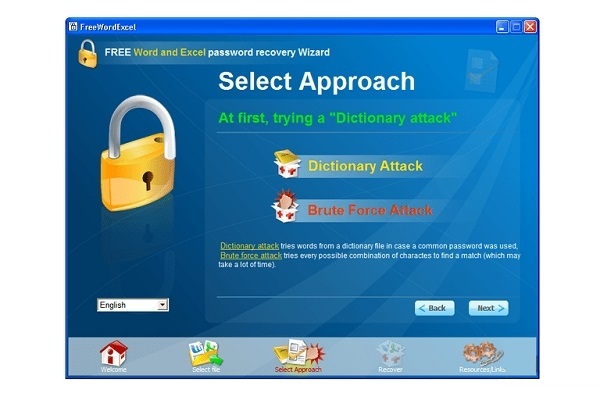 Free Word and Excel Password Recovery Wizard کار می کند فقط گزینه های بسیار کمتری دارد و فرایند کرک کردن پسورد ورد را بسیار ساده می کند. شما فقط باید فایل ورد را انتخاب کنید و برنامه