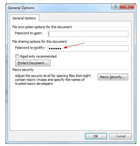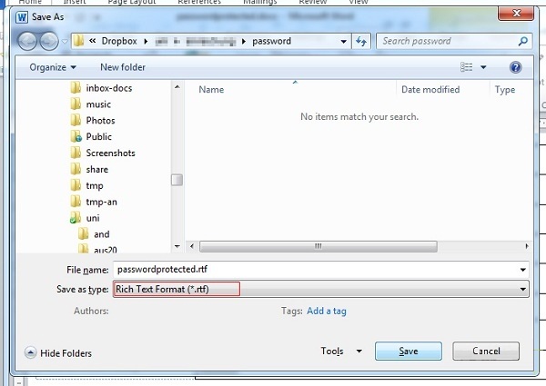 OK کلیک کنید حالا سند خود را ذخیره کنید. حالا سند جدید شما هیچ رمزی ندارد