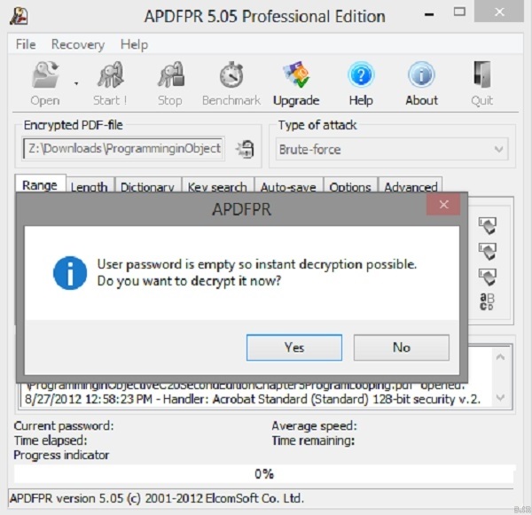 APDFPR است که مخفف Elcomsoft Advanced PDF Password Recovery است. این نرم افزار قابلیت پشتیبانی از تمام ورژن های آکروبات را دارد. این نرم افزار با استفاده از تکنولوژی