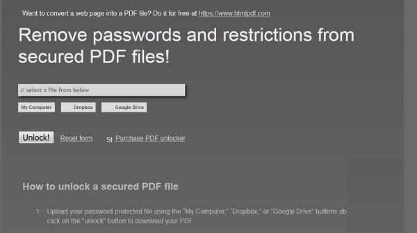 PDF Unlock یکی دیگر از سایت های مشهور است که شما می توانید از آن برای حذف پسورد