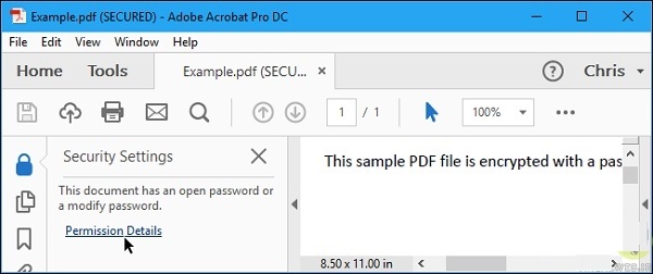 Adobe Acrobat Pro باز کنید و کلمه عبور را وارد کنید.روی آیکن قفل در سمت چپ پنجره کلیک کنید و
