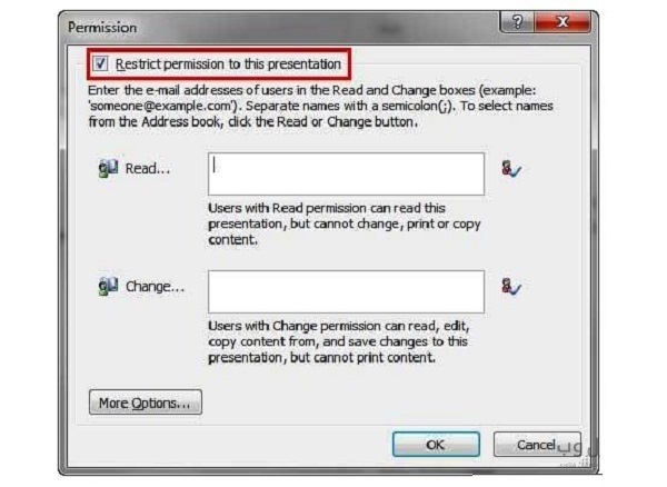 Restrict permission to this presentation را تیک بزنید. در کادر