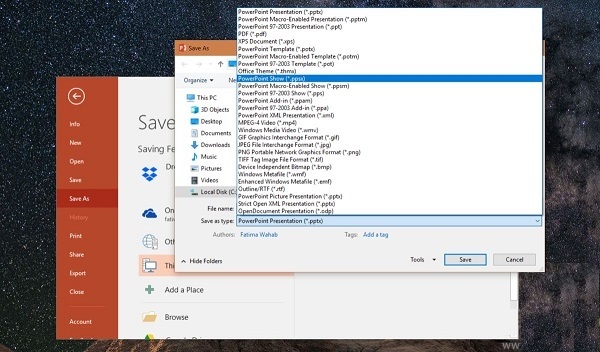 PPSX ذخیره کنید. برای این کار شما نیازی به نصب برنامه یا