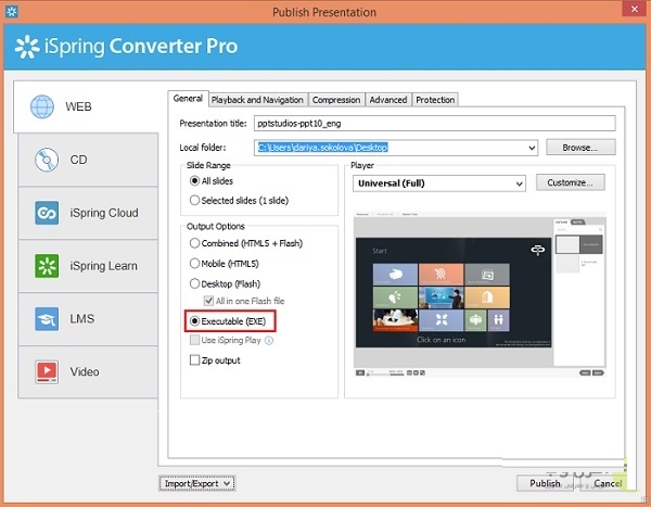 روش ۶ – روش تبدیل پاورپوینت به یک فایل خود اجرا یا exe
