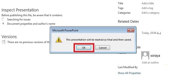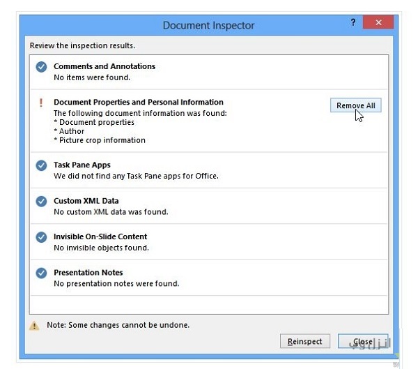 Document Inspector ممکن است در فایل پاورپوینت شما تغییراتی ایجاد کند پس با استفاده از