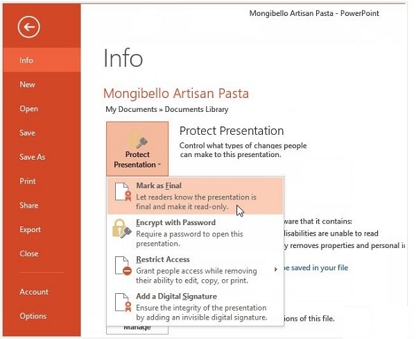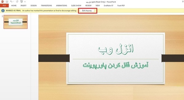 Mark as Final استفاده کنید. هنگامی که یک پاورپوینت را با