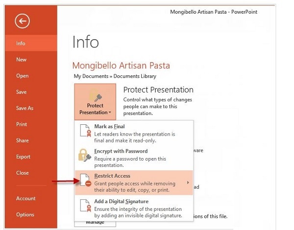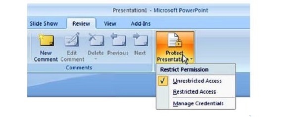 Protect Presentation کلیک کنید. از منوی کرکره ای
