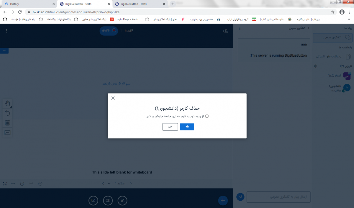 با انتخاب "بله" دانشپژوه از کلاس حذف می شود.