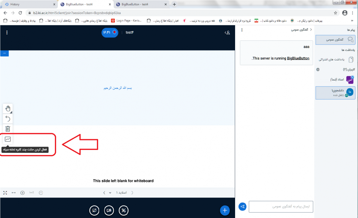 الف) ابتدا در کادر سمت چپ تصویر گزینه "فعال کردن حالت چند کاربره تخته سیاه" را فعال نمائید: