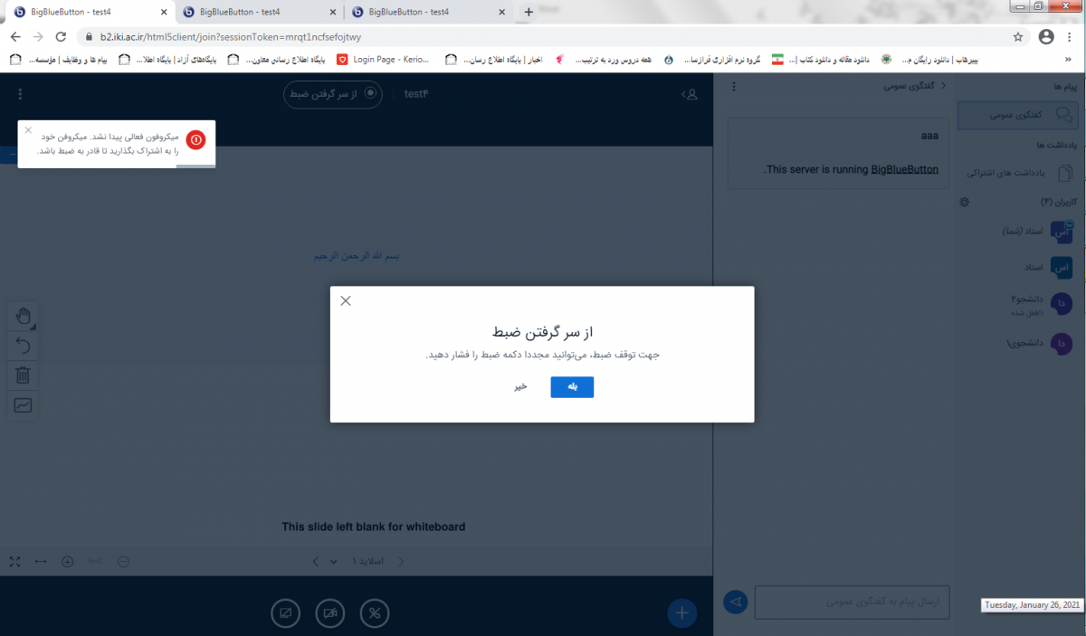 با انتخاب "بلی" ضبط صوت کلاس مجدد شروع می شود: